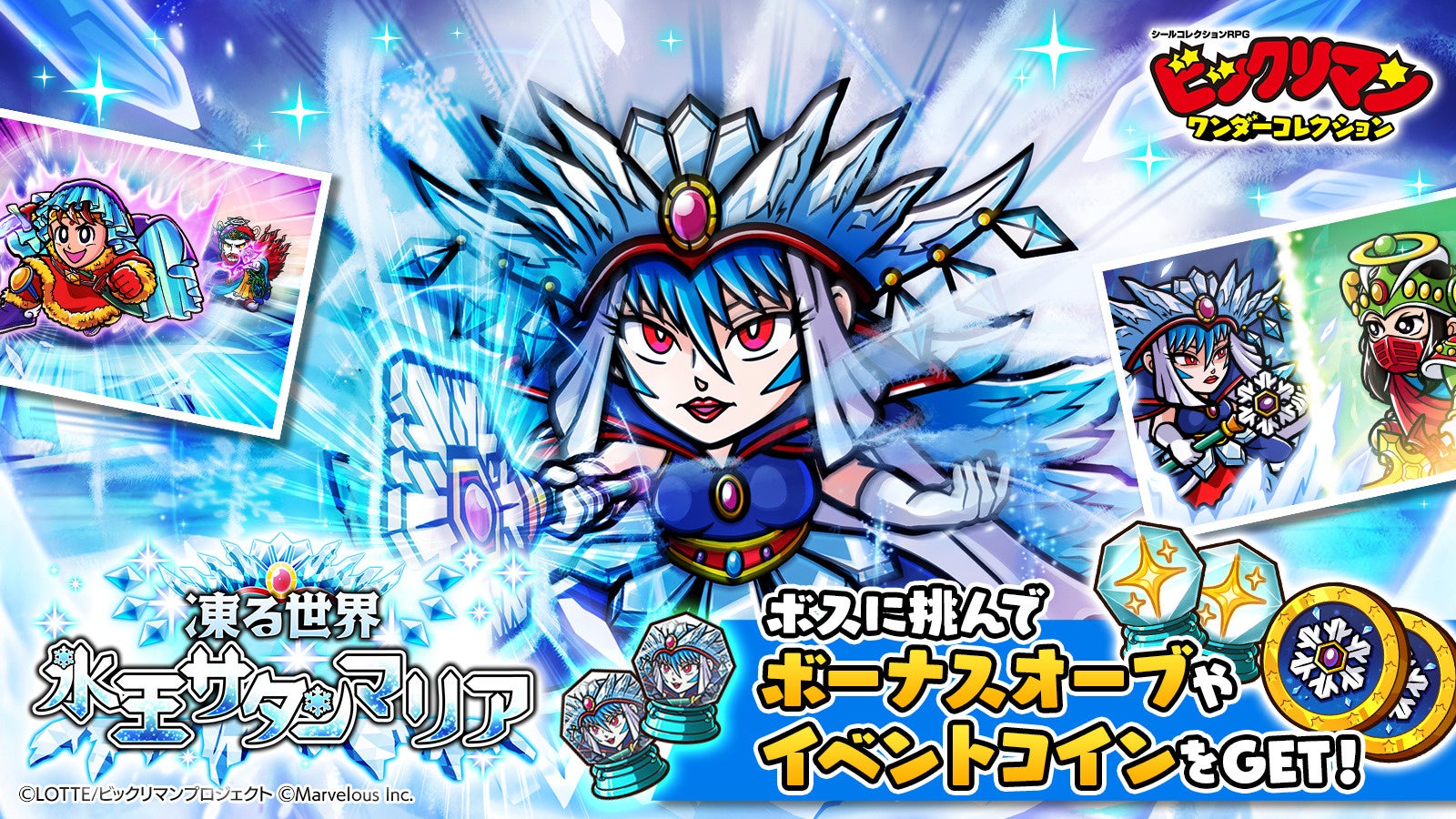 シールコレクションRPG『ビックリマン・ワンダーコレクション』:ワンコレ0.5周年キャンペーン!無料100連キャンペーンを開催!期間限定イベント「凍る世界 氷王サタンマリア」開催!