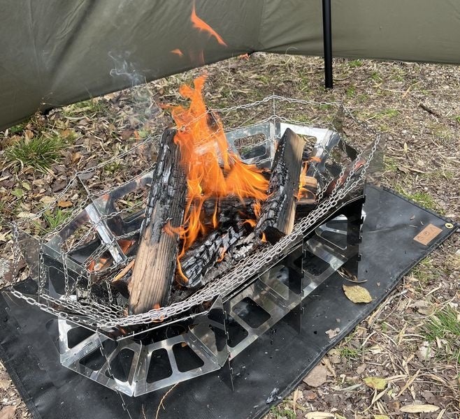 50年以上にわたる技術力で生み出した、鎖を薪受けに採用した独創的な焚き火台。炎が鎖の隙間から揺らめき、直火のような迫力を演出します。4スタイルに変形可能で、ソロからグループまで対応。A4サイズに収まるコンパクト収納で、キャンプの荷物をスマートにします。