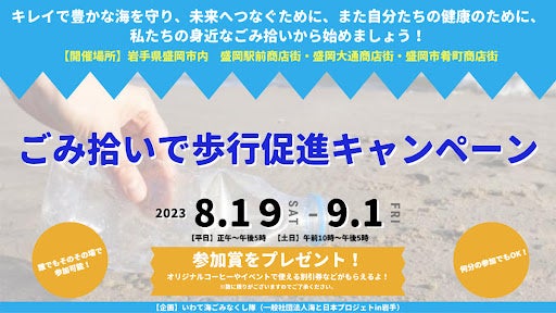 いわて海ごみなくし隊では、岩手のキレイで豊かな海を守り、未来へつなぐために、また岩手の皆さんの健康増進のため、「ごみ拾いで歩行促進キャンペーン」を岩手県盛岡市内の盛岡駅前商店街・盛岡大通商店街・盛岡市肴町商店街で開催いたします。