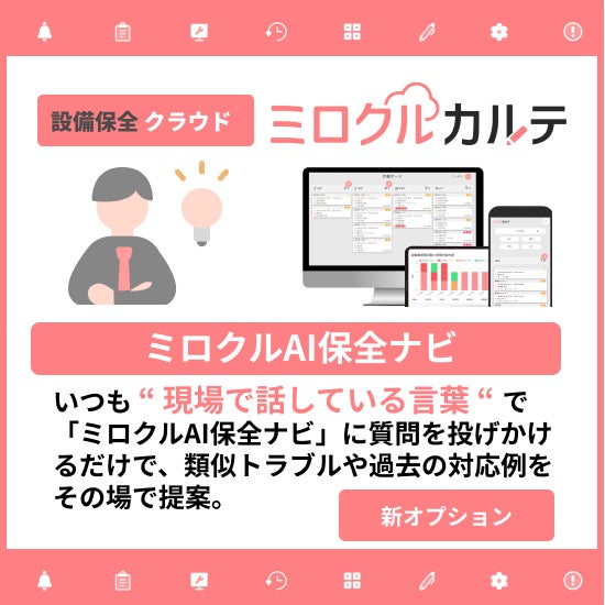 スマホやタブレットで入力すると同時に 情報が自動整理されるため、自然と蓄積・活用できる仕組みが定着。ノウハウの属人化やベテラン頼みを解消します。故障対応だけでなく予防保全や計画管理もサポートし、現場改善を後押しします。