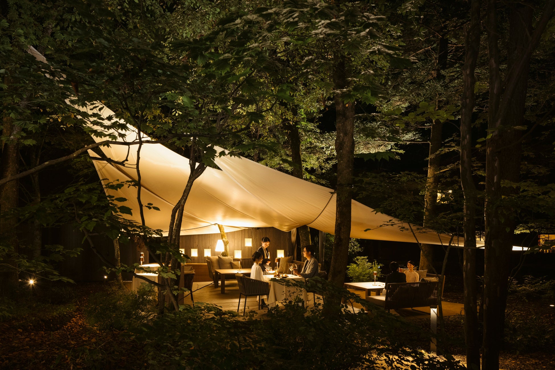 「星野リゾート 軽井沢ホテルブレストンコート」のメインダイニング「ブレストンコート ユカワタン」は、軽井沢の森に佇む一軒家レストランです。生命の源である水が育む森の恵みを、独自の視点で昇華させたコンセプト「水のジビエ」をベースに、シェフとゲストが共創する料理の提供方法「ミニマル・ガストロノミースタイル」で、軽やかで滋味あふれるフランス料理を堪能できます。
