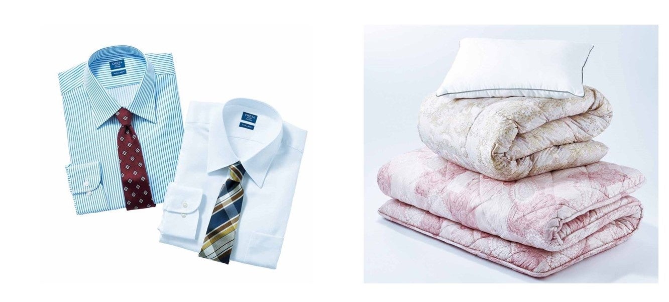 ・寝具3点セット(羽毛掛けふとん、敷ふとん、枕) 39,000円[限定10セット] (写真下右)