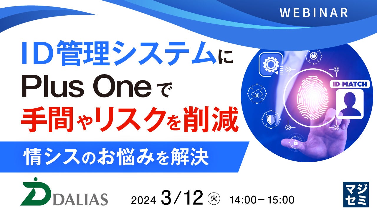 本セミナーでは、上記の課題を解決するID情報基盤データベースサービス「DALIAS」(ダリアス)をご紹介します。「DALIAS」は、よりスマートなID管理を可能にし、情シスの手間やリスクを解決します。セミナーでは、デモやユースケースをご紹介しながら解説いたします。情報システムご担当の方で「ID管理システムを導入したけど運用が楽にならない」「今の管理方法に課題感やリスクを感じている」といった方はぜひご参加ください。