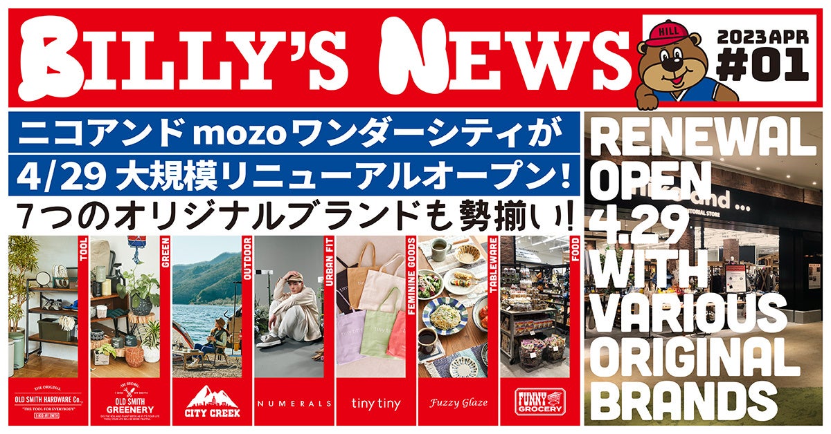 7つのオリジナルブランドが勢揃い!niko and ... 日本最大のショップmozoワンダーシティ店が4月29日(土)大規模リニューアルオープン
