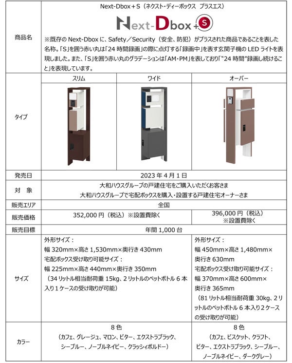 業界初 24時間防犯カメラ機能付きインターホンを搭載した戸建住宅向け宅配ボックス「Next-Dbox+S(ネクスト・ディーボックス プラスエス)」共同開発