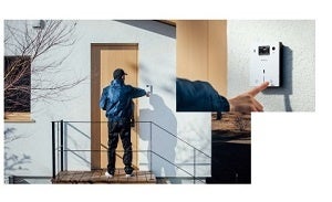 「Nasta Interphone」は、24時間監視カメラ機能を搭載したことで、常に玄関先の撮影・録画を可能としたとともに、宅配専用ボタンを押すと流れる自動応答メッセージにより、宅配業者と会話することなく荷物を受け取ることができます。また、スマートフォンやタブレットの専用アプリをダウンロードすることで、どこでも(※4)アプリを通じて来訪者の確認や応答ができます。