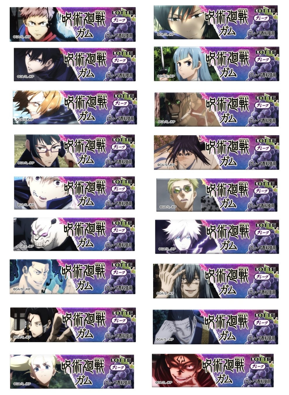 可愛いデザインと話題の折り紙レッテルが9種にパワーアップ!「呪術廻戦ガム<グレープ>」をリニューアル発売いたします。