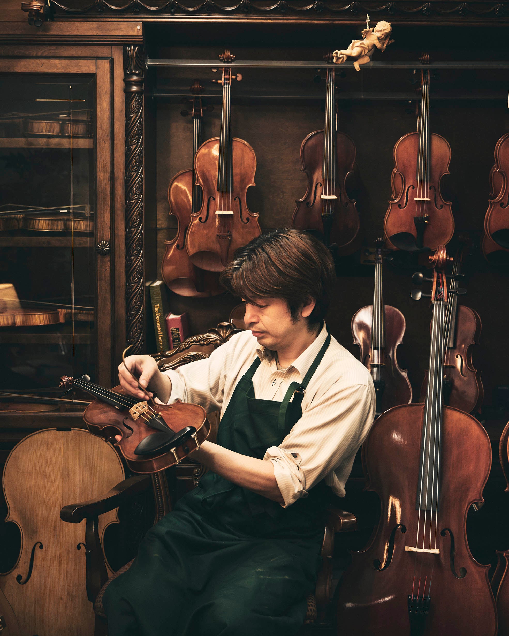 2002年チャイコフスキー国際コンクール製作者部門(チェロ)で総合第3位、音響第1位を受賞した弦楽器製作の匠であり、修理・製作の両面で高い評価を得ています。