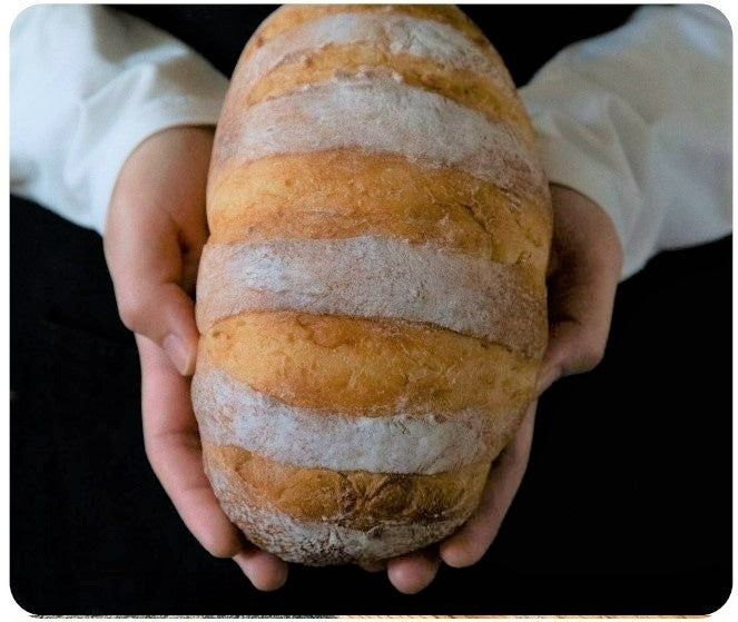 右)地元で評判の小浜温泉街に佇む昔ながらの小さなパン屋「パック」。そこで絶対に外せないもちもちずっしり、滋味深い雲仙じゃがブレッドは、島原半島のじゃがいもを蒸かし、40%も練りこんだという手の込んだパン。そのままでもしっとりとやさしい味わいですが、軽く焼いてバターをのせて、じゃがバター風のアレンジもおすすめです。