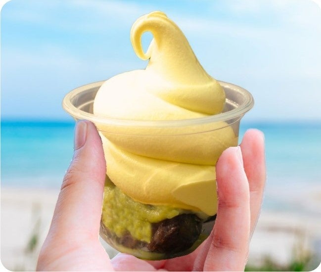 有機JAS認証の五島列島産さつまいも“ごとふわり(シルクスイート)”を贅沢に使用。芋のペーストを練り込んだソフトクリームの下には、小さな焼き芋がたっぷり。