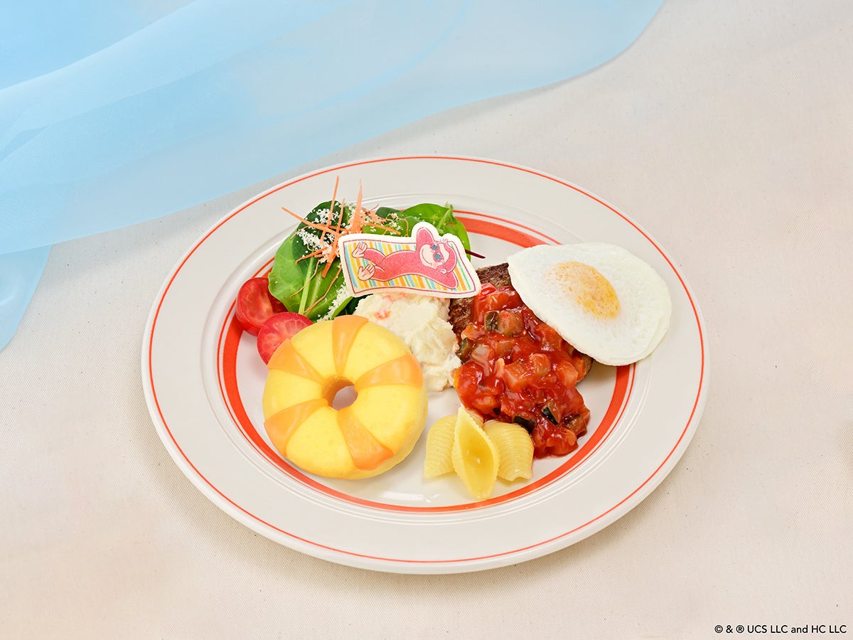 酸味の効いた夏野菜ソースがかかったハンバーグとうきわに見立てたパン、ポテトサラダや目玉焼きなど盛りだくさんの「太陽サンサン!こんがり日焼けした、夏の思い出プレート」と魚介類のコクを感じるデザート付きの「サーフボードにペタペタ!砂浜のようなシーフードピラフプレート」は、いずれもボリューム満点のワンプレートメニューです。