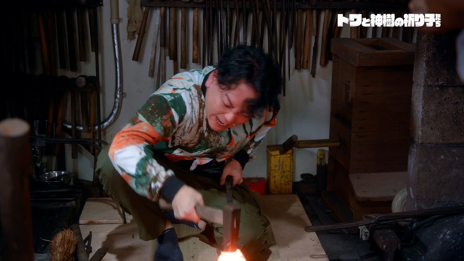 実際に鍛冶場に協力いただき撮影を行い、刀鍛冶に挑戦していただいております。