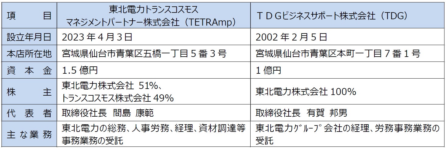 東北電力トランスコスモスマネジメントパートナー株式会社とTDGビジネスサポート株式会社の合併について