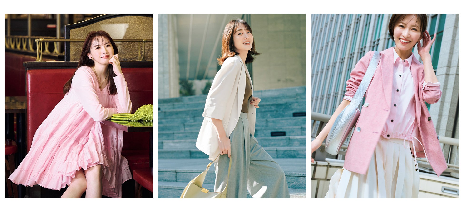 気合いを入れたい日の特別な一着を宮田聡子さんが着こなす「私に自信を宿してくれる、“ちょっといい服”」をはじめ、高梨臨さん・岡崎紗絵さん・渋谷凪咲さんがおしゃキャリ派・ミーハートレンド派・大人可愛い派のキャラクター別に提案する「“こう見られたい”を叶える、春のキャラ立ちコーデ」、谷まりあさんがなりたい気持ちを込めて選ぶモチベアップジュエリーを纏います。「そのほかにも、先輩OL・後輩OLに扮した宮田聡子さん&鈴木ゆうかさんによる「春の好印象に効く着回しスペシャル60DAYS」など、春のおしゃれがもっと楽しくなる企画が盛りだくさんです。