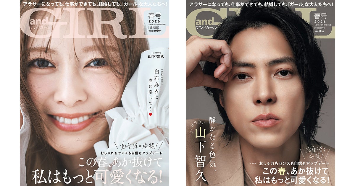 株式会社DONUTS(東京都渋谷区、代表取締役:西村啓成)が編集制作・発行する女性向けファッション誌『andGIRL』は、2026年4月7日(火)に春号を発売しました。「この春、あか抜けて私はもっと可愛くなる!」が大特集の今号の表紙は、【通常版】を白石麻衣さんが、【特別版】を山下智久さんが務めます。