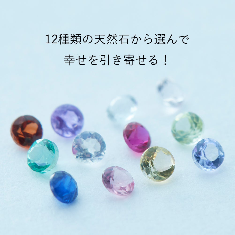 アクアマリン、アメシスト、ガーネット、モルガナイト、シトリン、タンザナイト、ピンクトルマリン、ペリドット、ブルームーンストーン