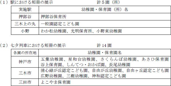 この取組は、神戸電鉄粟生線活性化協議会の取組として、沿線の幼稚園や保育園(所)にご協力をいただいています。