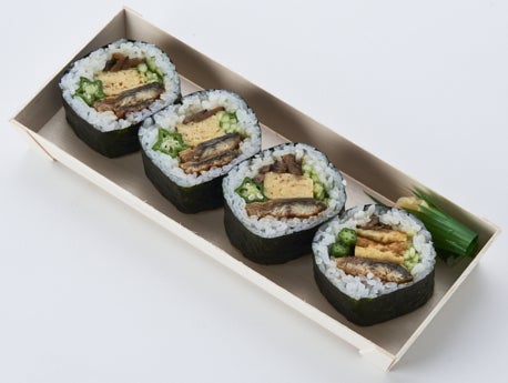 ふっくら香ばしい国産鰻をオクラ、胡瓜と夏の味覚と巻きました。暑さを吹き飛ばし涼やかなひとときをご賞味ください。