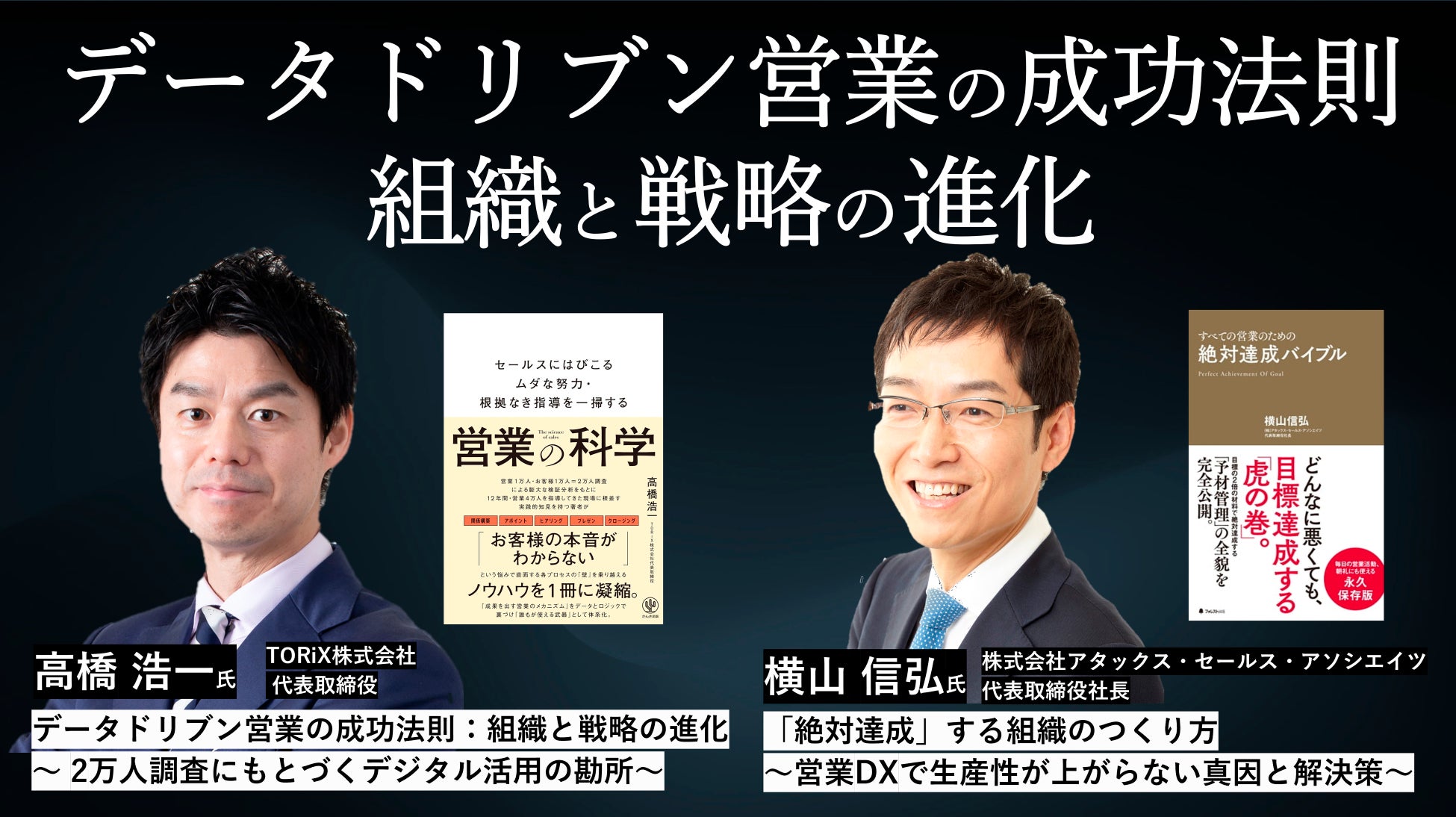 基調講演では、著書『無敗営業』がロングセラーとなったTORiX代表の高橋浩一氏が、DX時代に求められる営業組織の姿や勝ちパターンの構築法などを指南。特別講演ではアタックス・セールス・アソシエイツ社長の横山信弘氏が、「絶対達成する組織のつくり方」をテーマに営業DX推進のノウハウを紹介します。