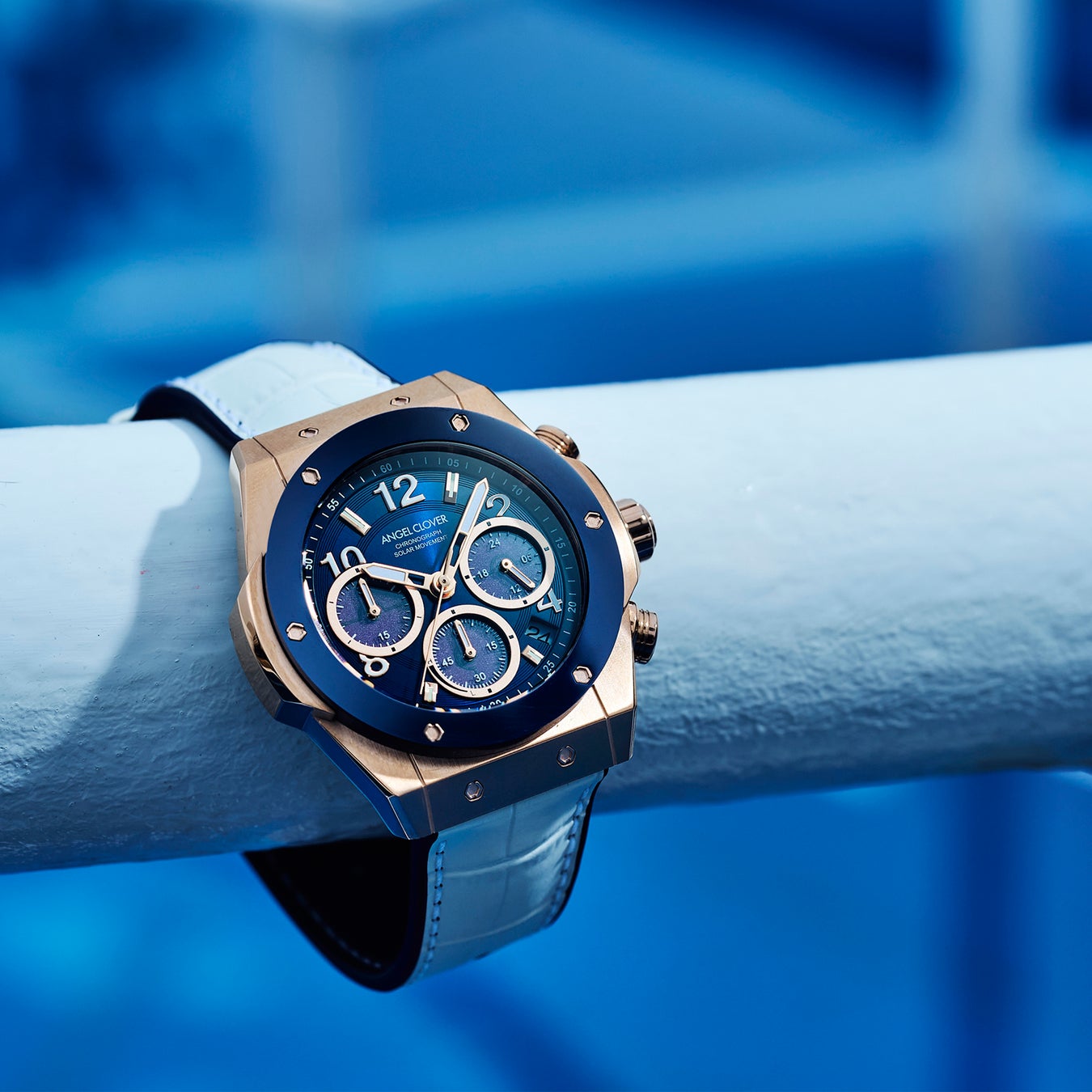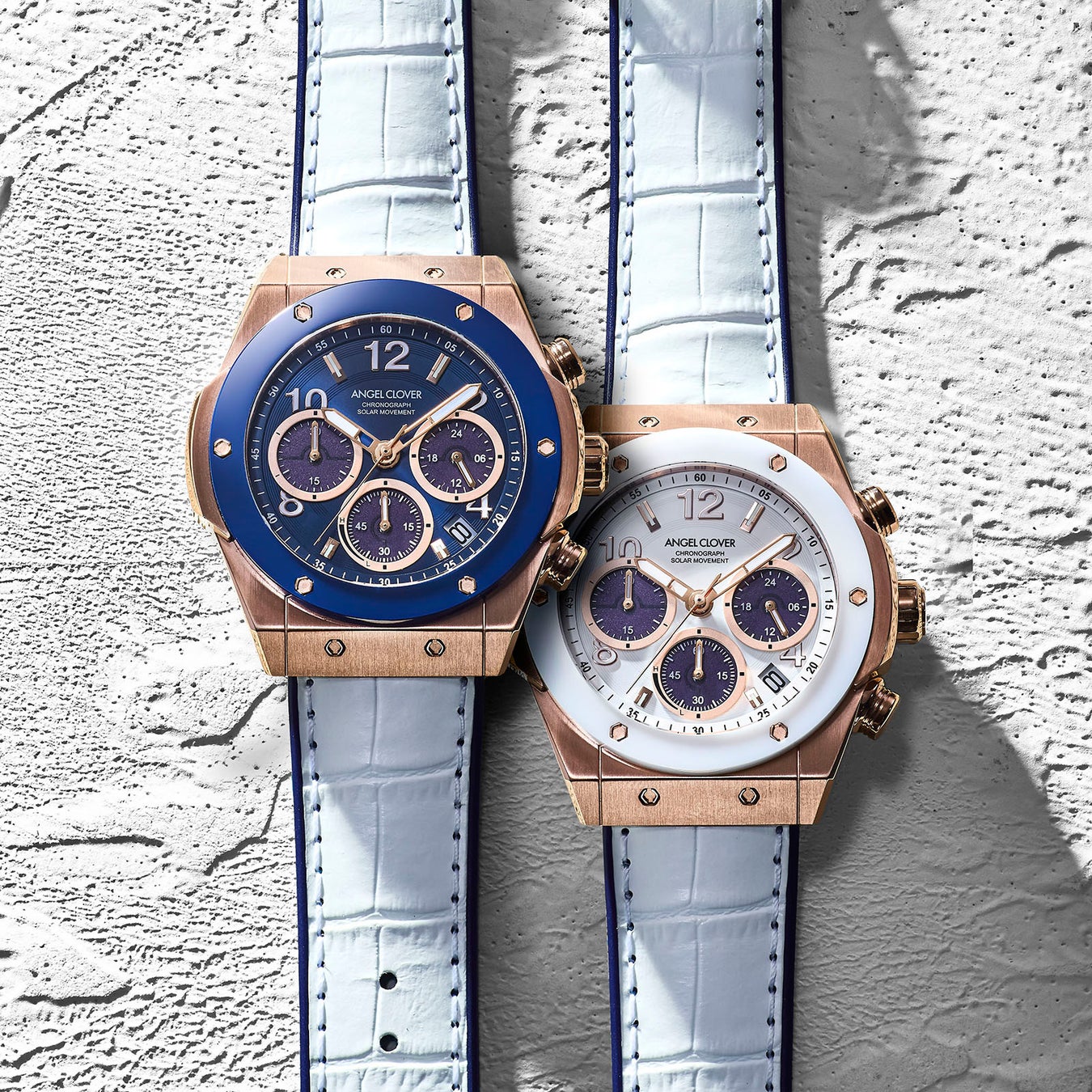 エンジェルクローバーを代表する人気シリーズ『EXVENTURE SOLAR』が、素材と表情をアップデート、『EXVENTURE SOLAR CERAMIC』として新しく登場。艶やかなセラミックベゼルを纏った新作は、スポーティなクロノグラフにほどよい上品さをプラス。空や海を思わせる爽やかなカラーリングが、夏の腕元を軽快に彩ります。
