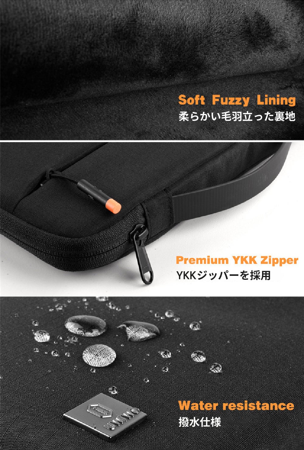 柔らかなフリース生地の裏地がPCを守る/400g/撥水/14インチまで対応