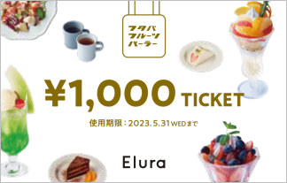 オープン翌週の4月28日(金)より、税抜10,000 円以上お買い上げの方に、季節のフルーツをふんだんに使ったパフェなどが大人気のフタバフルーツパーラー(Elura同フロア・4F)でご利用いただける1,000 円チケットプレゼントいたします。