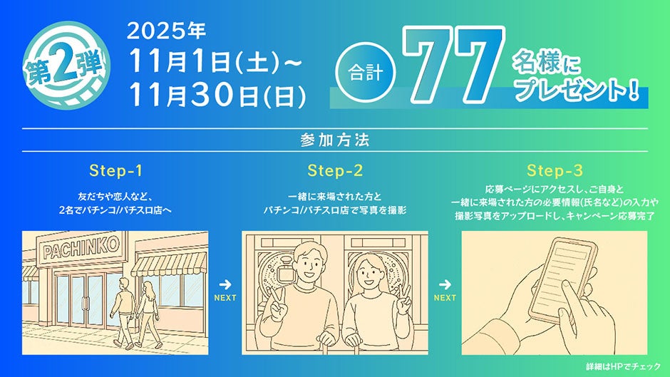 本キャンペーンを通じて、参加者の皆さまに「ひとりじゃない楽しさ」を感じていただき、パチンコ・パチスロをより身近で楽しい時間として体験していただくことを目指しています。