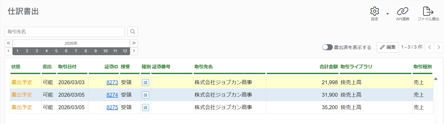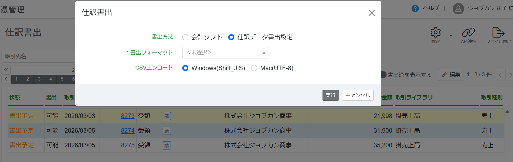 ・各種会計ソフトに対応した形式での仕訳データ出力