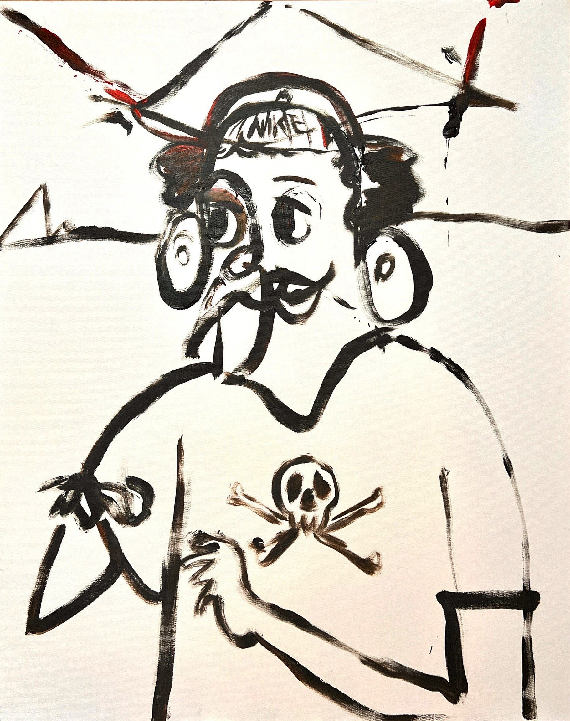 ある日、ネット上に溢れかえる絵の流れの中にスプレーで一筆描きした絵がパッと目に飛び込んできました。その絵の潔さにビックリしました。須田さんの絵が既視感をくぐり抜けて一撃でその印象を焼き付けてきます。