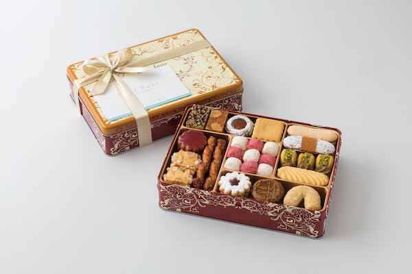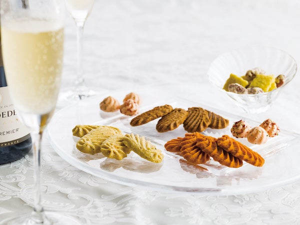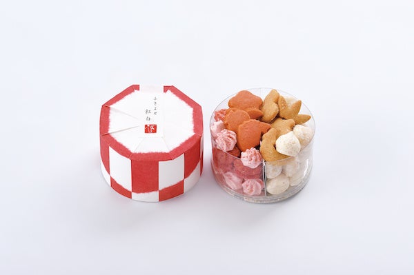 木苺の爽やかな風味が口いっぱいに広がるクッキーや生姜&ヘーゼルナッツのサクサクとしたメレンゲ、口の中でさらりとほどけるきな粉のクッキーなど、縁起のよい形に焼き上げた二色のクッキーの詰め合わせ。