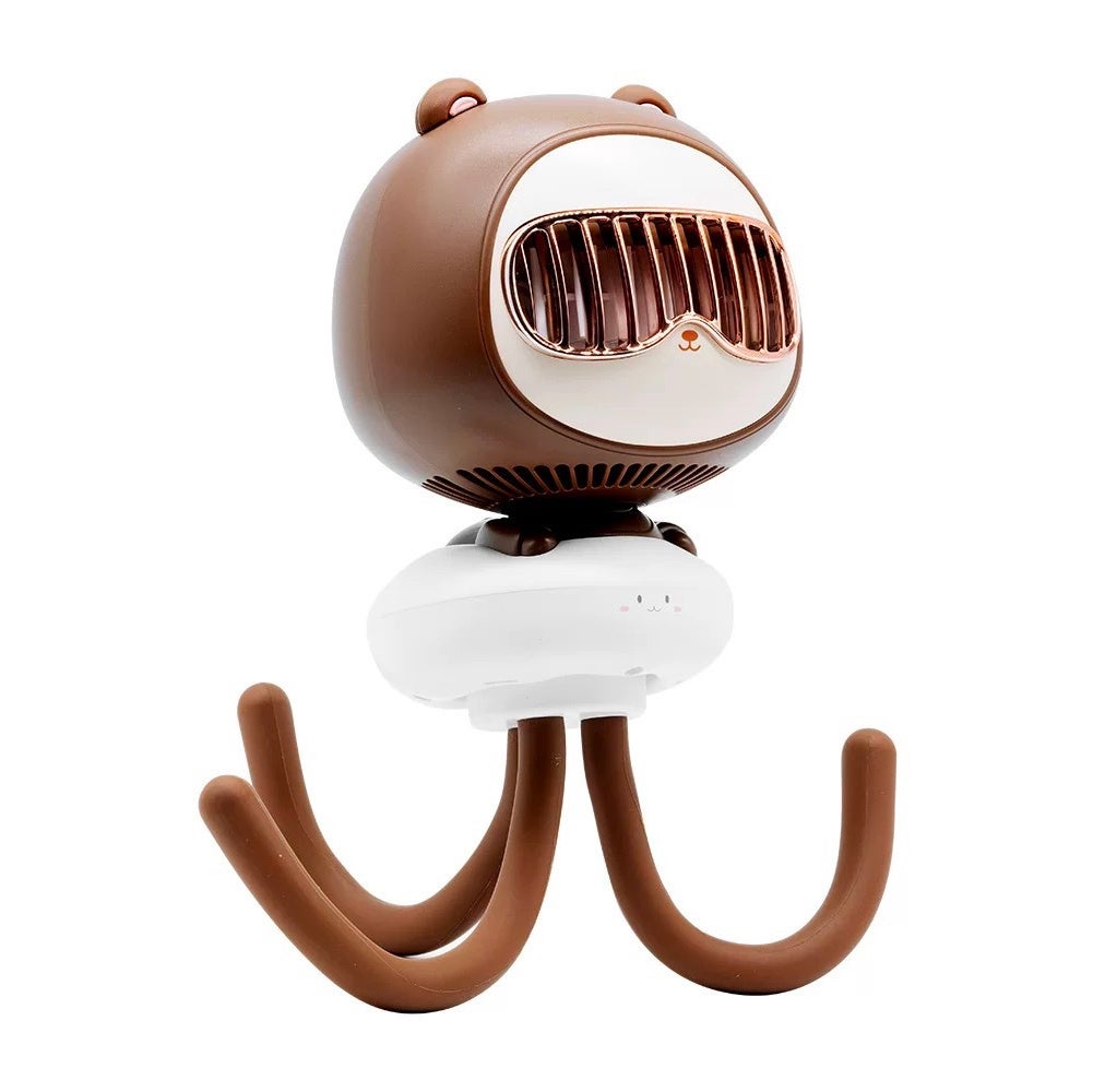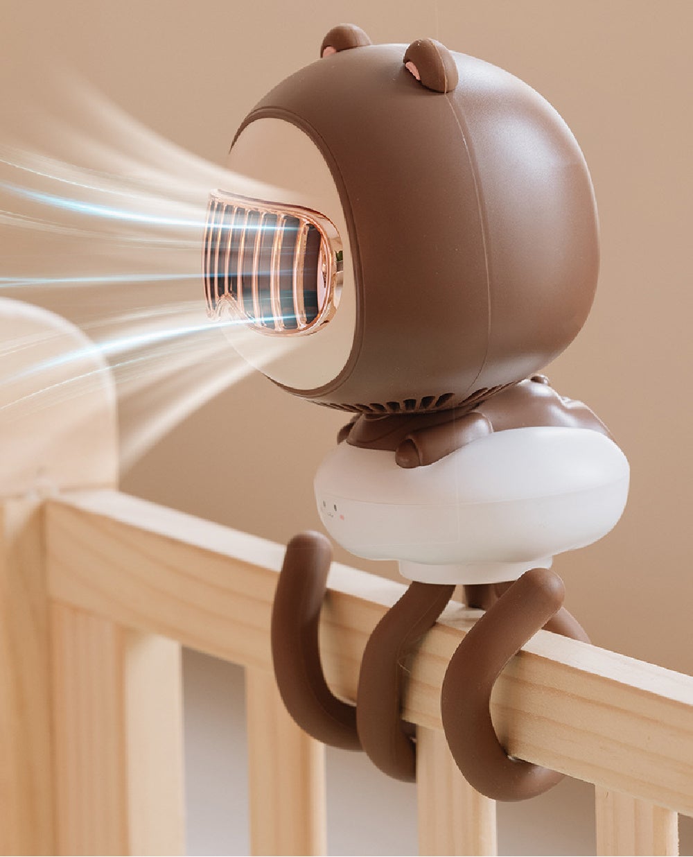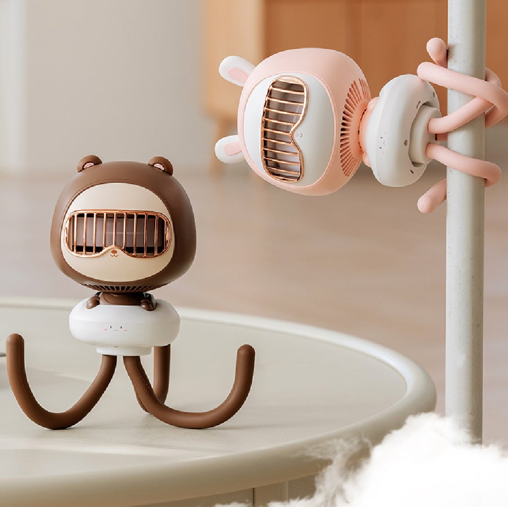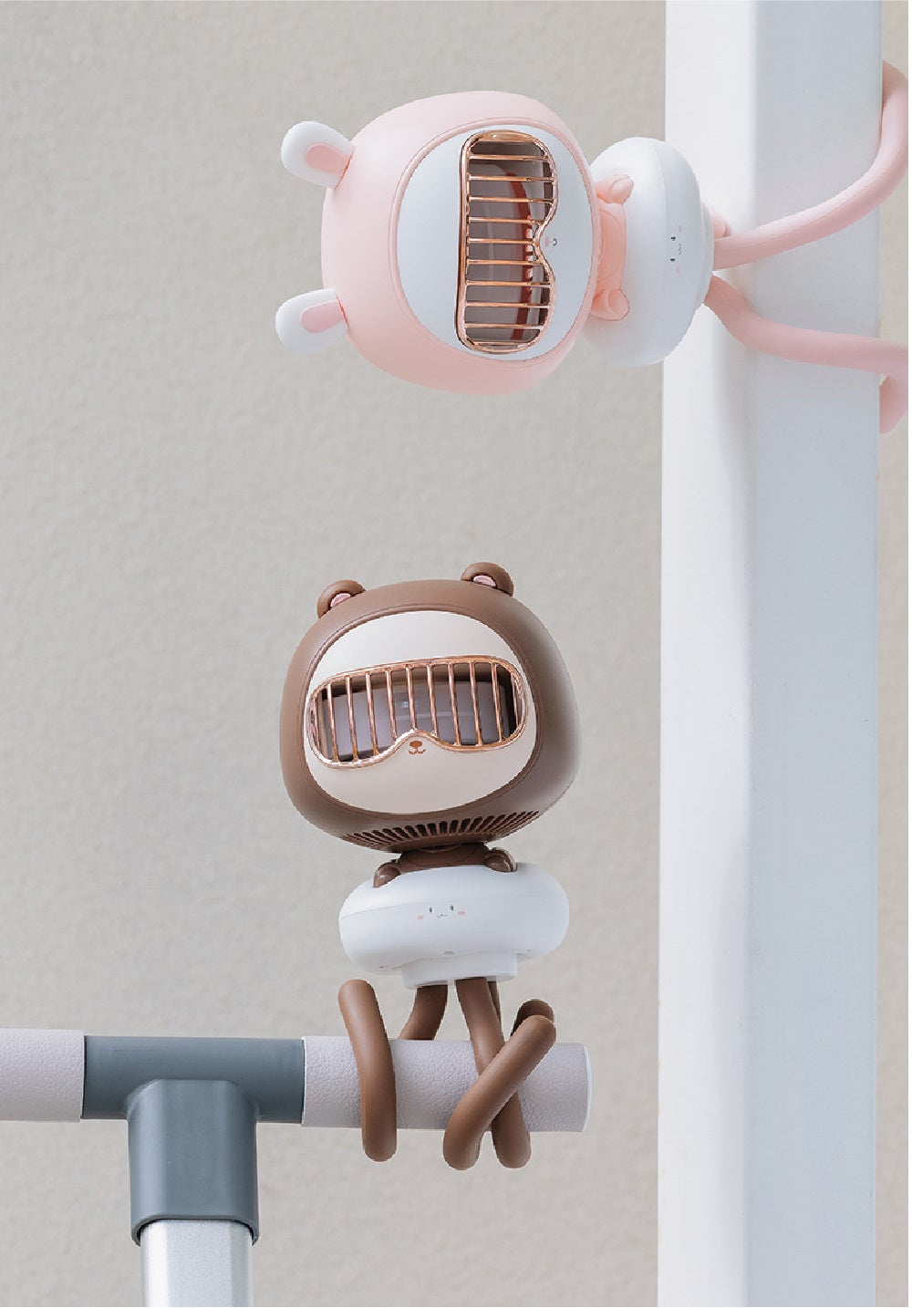 「KumaFan-G」は、その特徴的な脚が曲がり、自由に巻き付けて固定可能です。