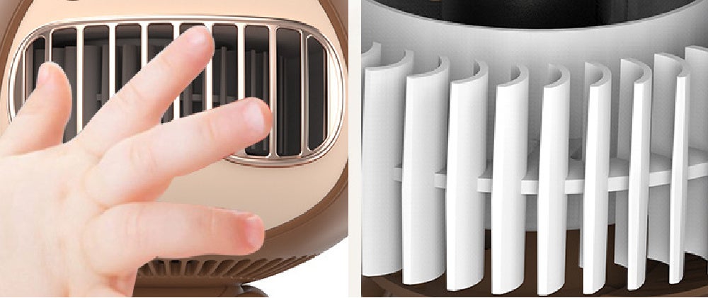 また、内部には縦向きの安全なブレードデザインが採用されており、万が一の事故を防ぐための配慮です。