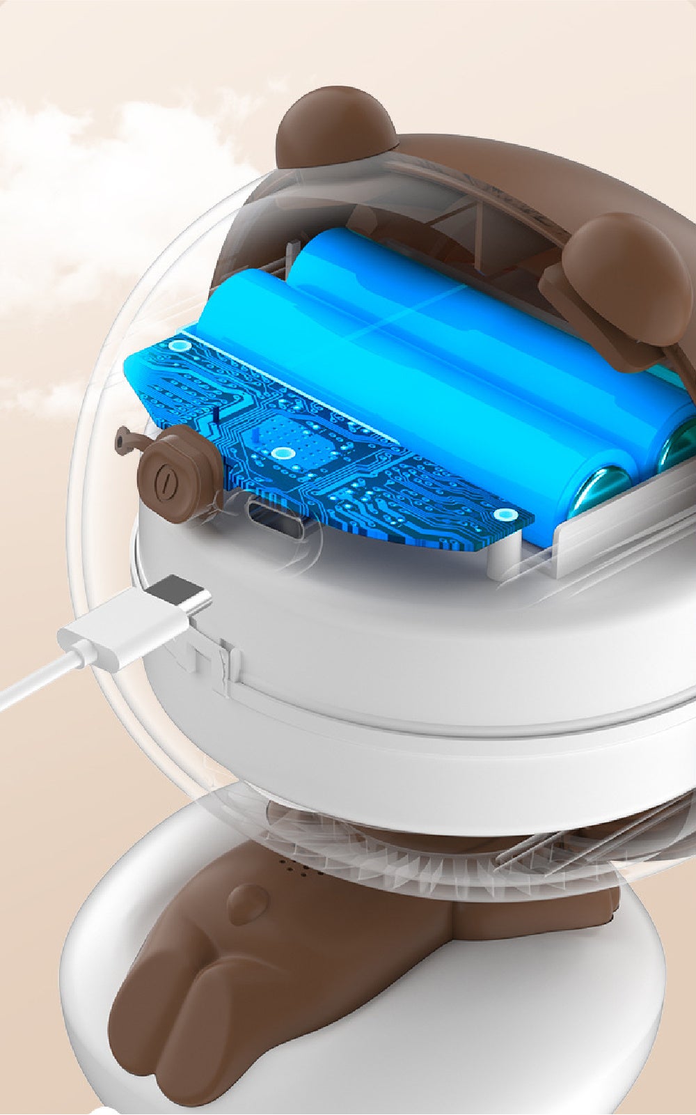 「KumaFan-G」は、内蔵の3600mAh電池で最大10時間連続稼働します。家庭で、オフィスで、あるいは外出先で、様々なシーンで長時間お使いいただけます。
