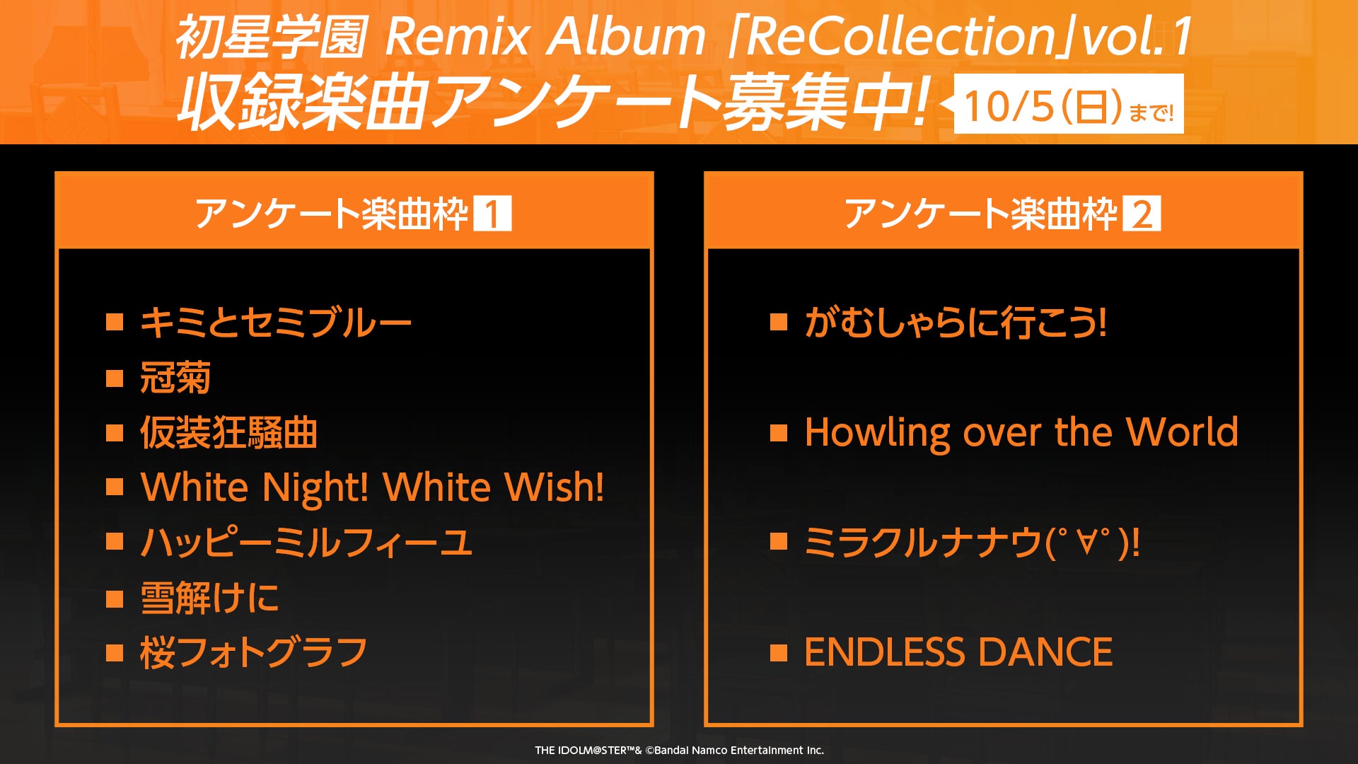 初星学園 Remix Album 「ReCollection」 vol.1 制作決定!収録楽曲を決定するアンケートも実施決定!【10月5日(日)まで】
