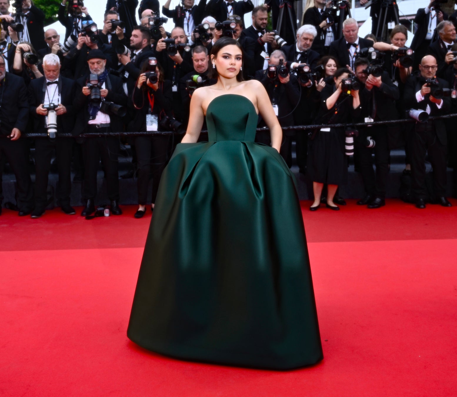 アリアナ·グリーンブラットは、映画「Eddington(原題)」のプレミアに、メゾンのカスタムメイドのラウンドネックと構築的なプリーツスカートが特徴のダークエメラルドグリーンのシルクダッチェスサテンビスチェドレスを着用しました。