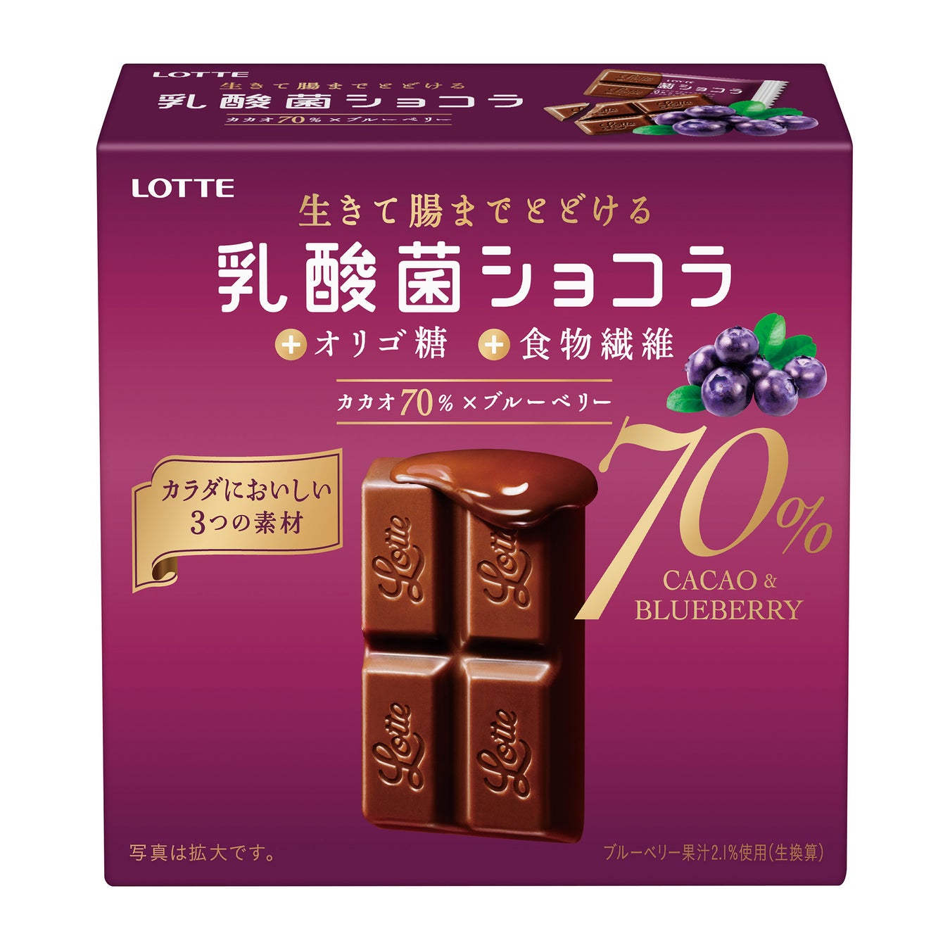 株式会社ロッテは、9月27日(火)に『乳酸菌ショコラ』シリーズから『乳酸菌ショコラ カカオ70×ブルーベリー』 『乳酸菌ショコラ 3種アソートパック』を発売いたします。ロッテ独自の「チョコブロック製法」で乳酸菌T001を生きたまま腸に届けるチョコレートです。乳酸菌T001に加え、ビフィズス菌の餌となるオリゴ糖、カカオ由来の食物繊維を配合しています。