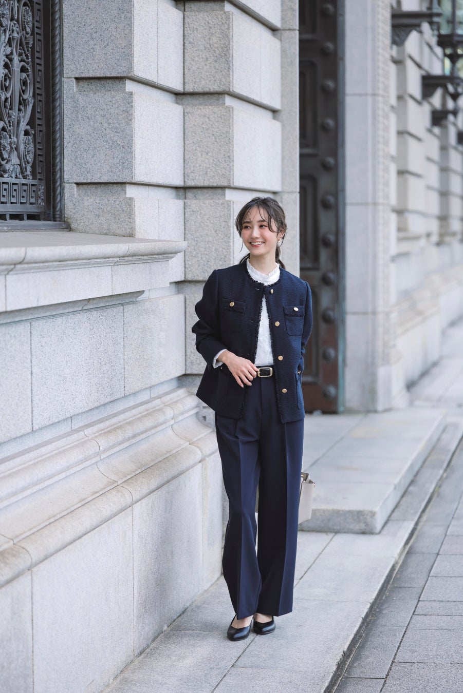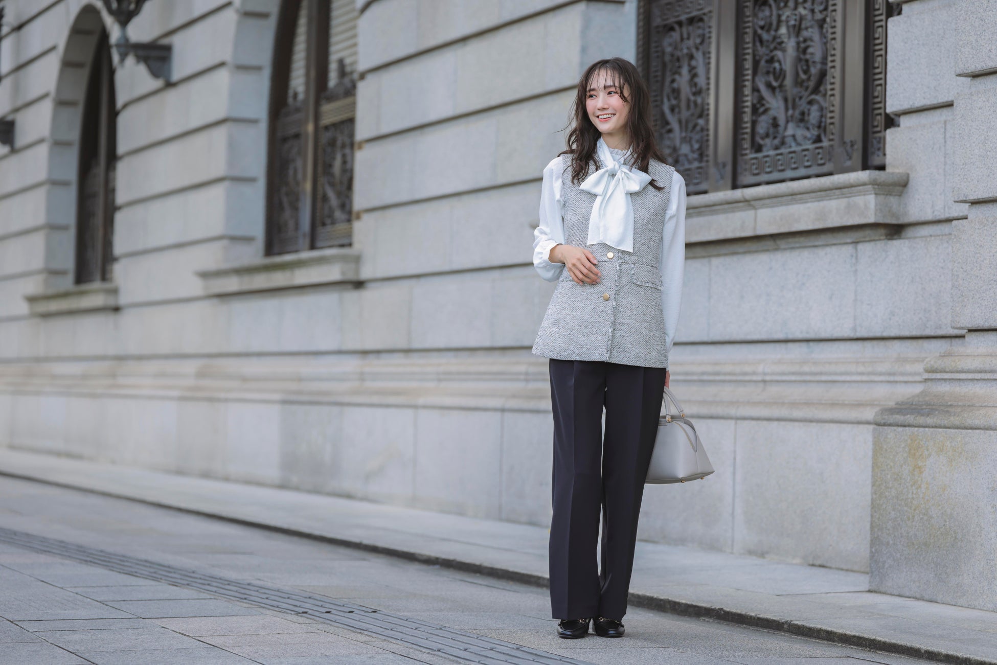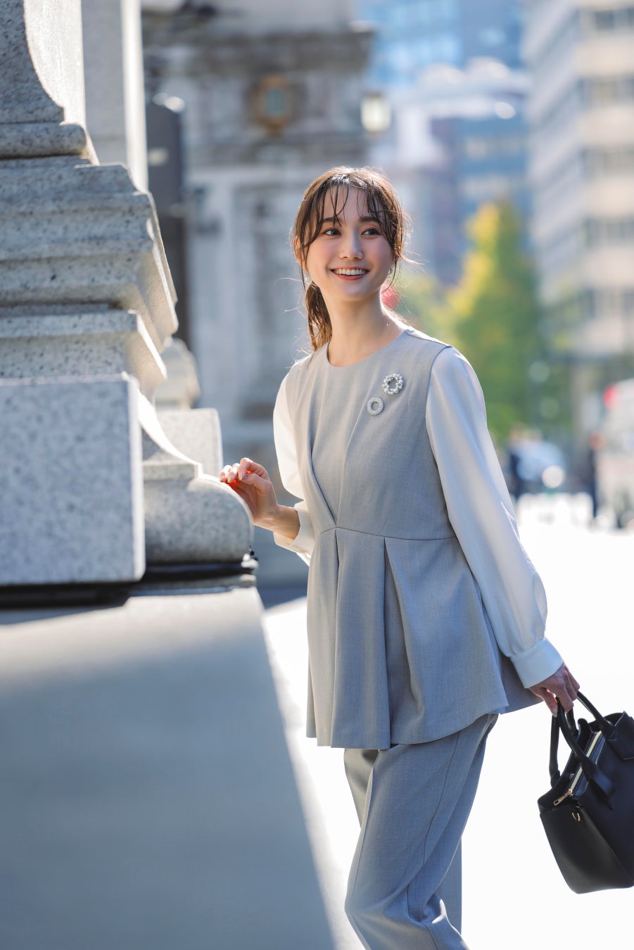 式典で活躍したジレやブラウスを、デニムやカットソーと組み合わせて“デイリーコーデ”へとアップデートするグローブならではの着回しをたっぷりとご紹介いたしますので、お楽しみに!