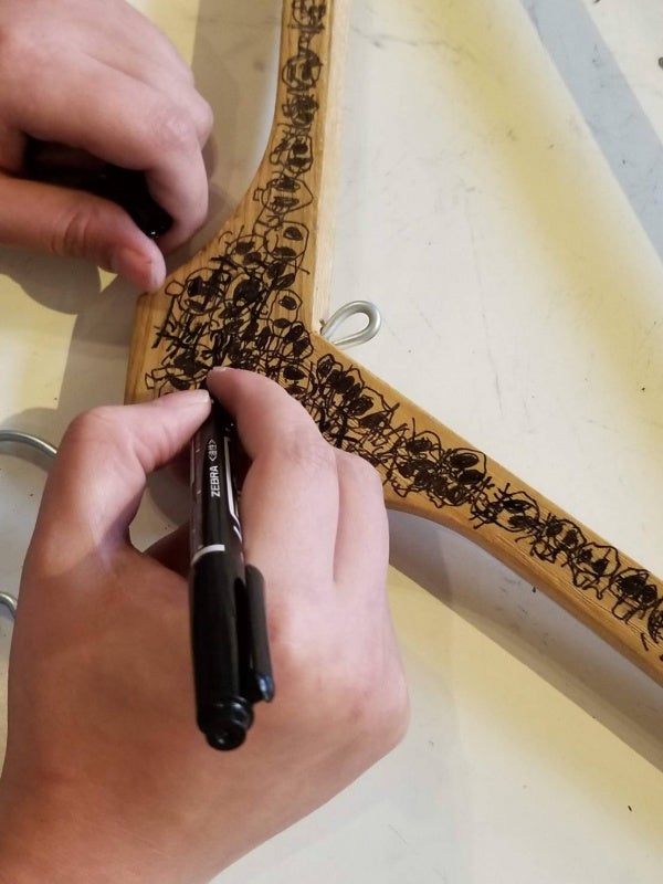 ご自宅で不用になったハンガーを使って、その場でアートづくりに挑戦。会場に展示された作品「蘇生」にお持ちのハンガーを加えて、作品をさらにパワーアップさせてください。