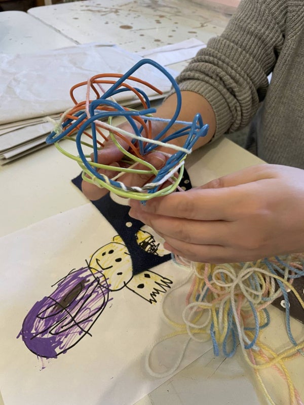 一般社団法人 schomojina が運営する障がい福祉サービス施設 生活介護事業所 スコモジーナ との連携で、ハンディキャップのある人たちと地域の子供たちとの手によって、廃棄されるはずだったハンガーを使ったオブジェを完成させました。