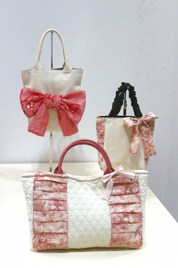 また会場ではエコリンググループでお買い取りした着物の中からシミ汚れがあり着物としてのリユースが難しいものを京都芸術デザイン専門学校の学生の手によってファッショングッズにアップサイクルした作品も展示します。