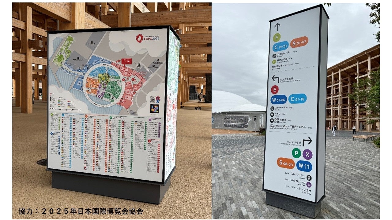 本製品の屋外掲出における鮮やかな発色や耐久性、再資源化できる環境性が評価され、大阪・関西万博会場内の案内サインとして万博敷地内に設置されました。