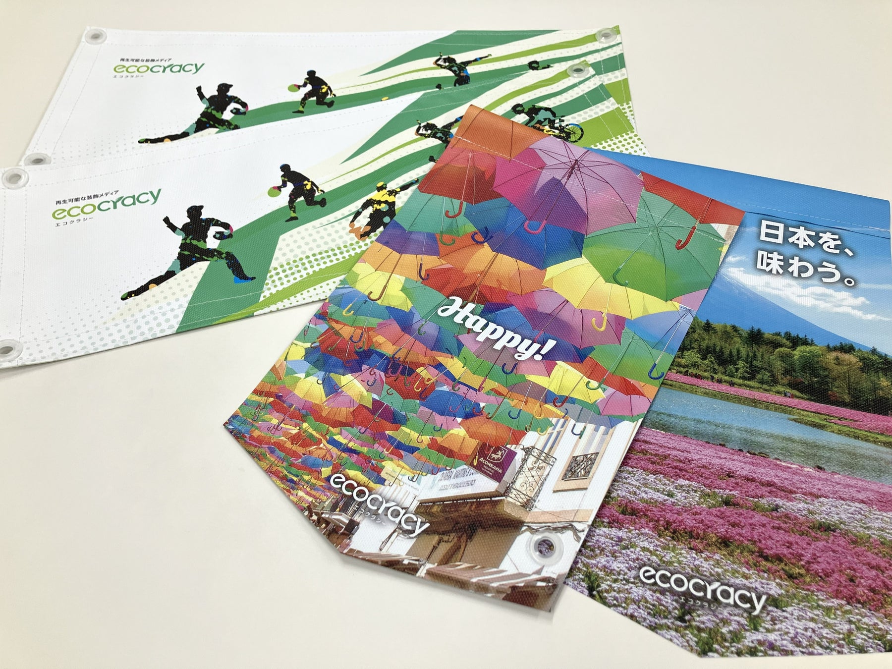 なお本製品は本格提供開始に先立ち、大阪・関西万博の会場案内サインに採用されています。万博においては、大阪府及び府内の各市町村に万博の機運醸成のためPR用横断幕を寄贈し、万博終了後は寄贈した横断幕を回収し、ノベルティへ再資源化する資源循環の取り組みも実施しています。