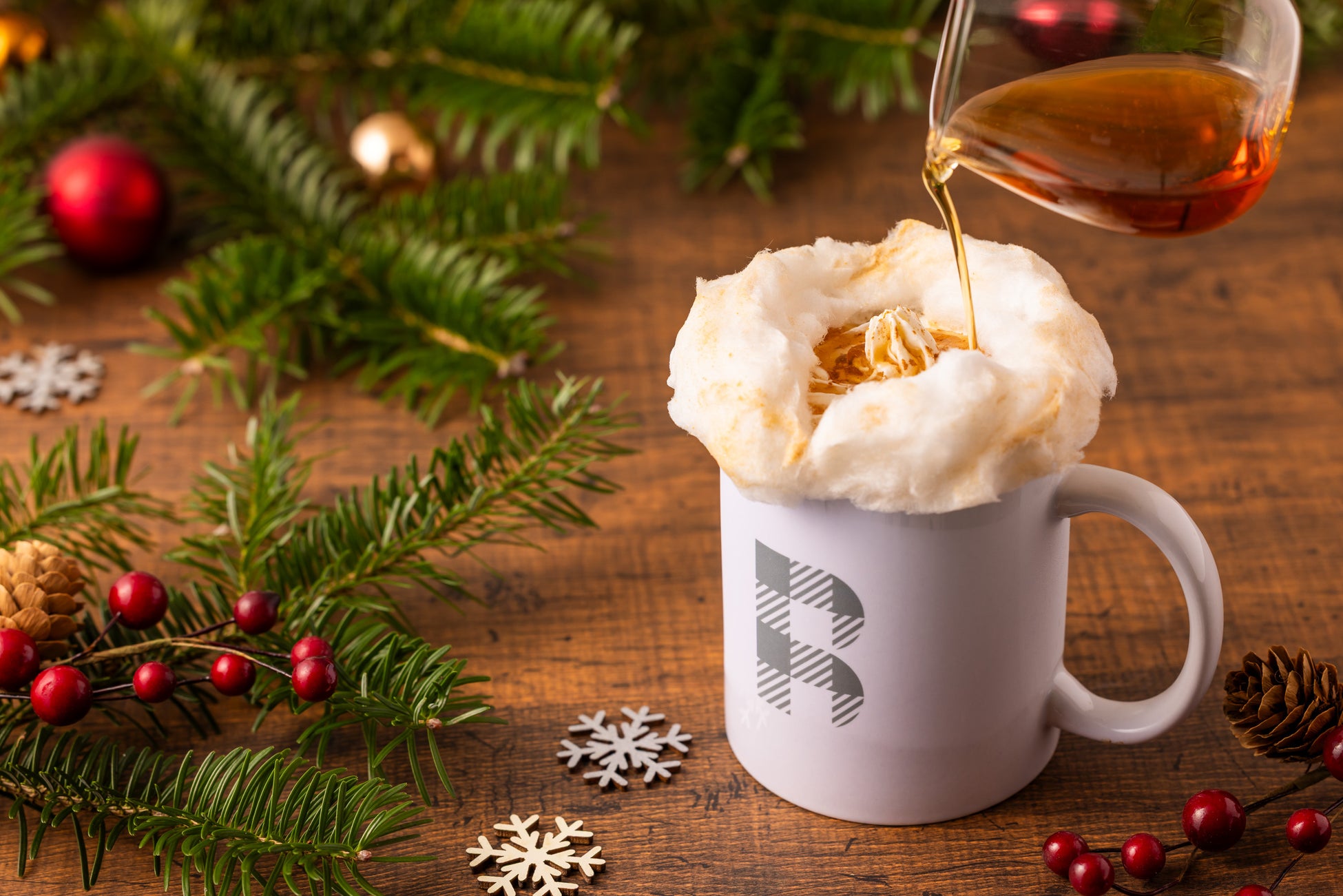 BEB5軽井沢内のカフェにて、コラボ期間限定メニューを販売します。スイーツは、ブランドモチーフである羊や毛糸玉をあしらったセミフレッド(*1)です。生クリームやフルーツ、メレンゲを入れ、軽やかな食感に仕上げました。味は、チョコナッツ、ドライフルーツ&ナッツ、モンブランの3種類です。ドリンクは、WOOLRICH発祥の地であるアメリカ・ペンシルベニア州の名産品、メープルシロップを使用したラテです。羊の毛をイメージしたわたあめをトッピングしており、温かいラテが溶かし出す、甘いわたあめの優しい味わいを楽しめます。