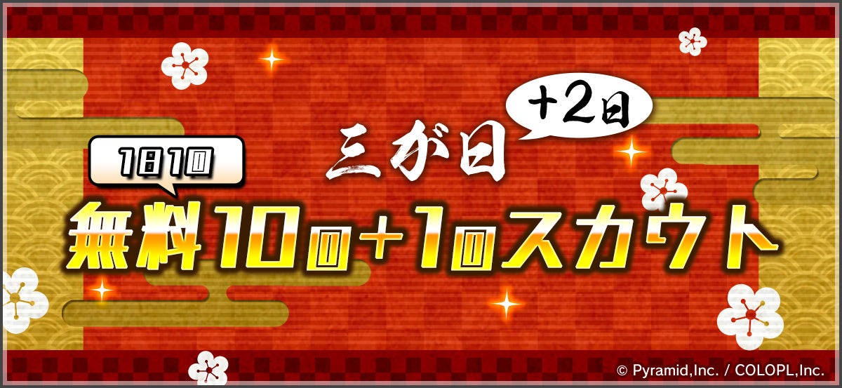 2026年1月1日(木)0:00より、無料スカウトが毎日行える「三が日+二日 無料10回+1回スカウト」や、★4キャラが確定入手できる各種「★4キャラ1人確定スカウト」など、様々な「お正月アップデート」をゲーム内にて開催しております。