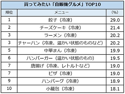 ■買ってみたい「自販機グルメ」上位は「餃子」「チーズケーキ」「ラーメン」「チャーハン」
