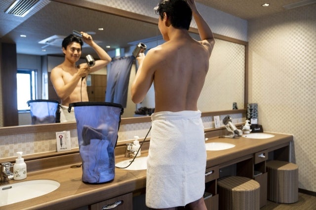 大容量の10ℓタイプなので、入浴後の体を拭いたタオルなどを、気兼ねなく入れられるのも防水仕様ならでは。洗濯物を干す時にも便利で、洗濯後の湿った衣類をドサッと入れて持ち運べる!ジム、サウナでも時に重宝間違いなし!