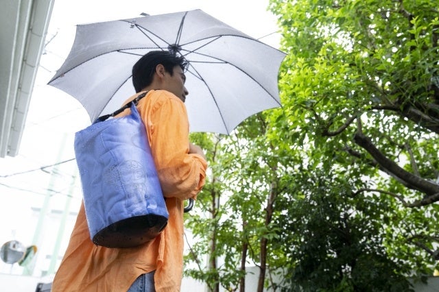 DRY BAGとは、アウトドア、マリンスポーツ、旅行、防災用など、使用するシチュエーションによって、手さげや肩かけなど、複数の使い方で使える防水仕様のバッグのこと。