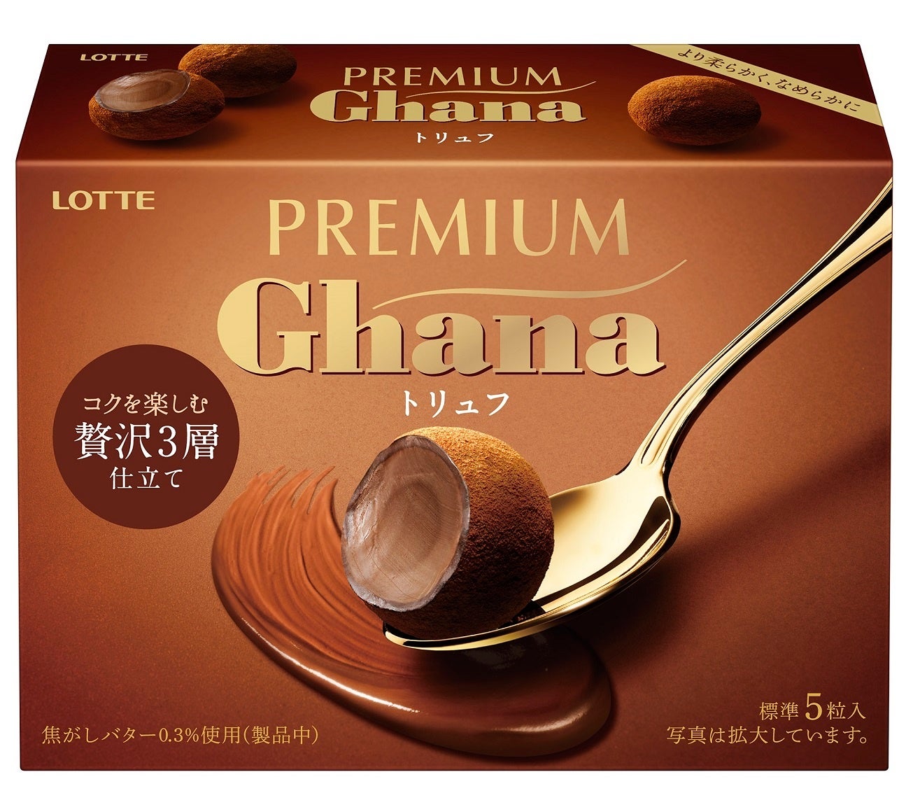 株式会社ロッテは10月4日(火)に、とろけるくちどけの「ガーナ」シリーズから、ひと手間加えた「プレミアムガーナ」を発売いたします。まるで専門店のように仕立てた、この季節ならではの特別な商品です。好評いただいた昨年と同様に「生チョコレート」「フルーツショコラ」「トリュフ」の3タイプ5品をご用意いたしました。