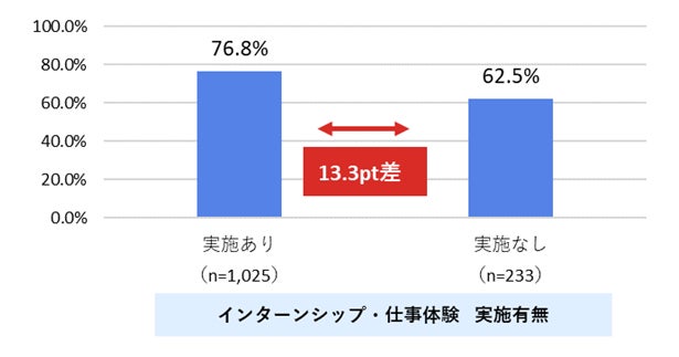 ※インターンシップ・仕事体験の実施有無は「インターンシップ・仕事体験参加学生数の前年比」より算出。