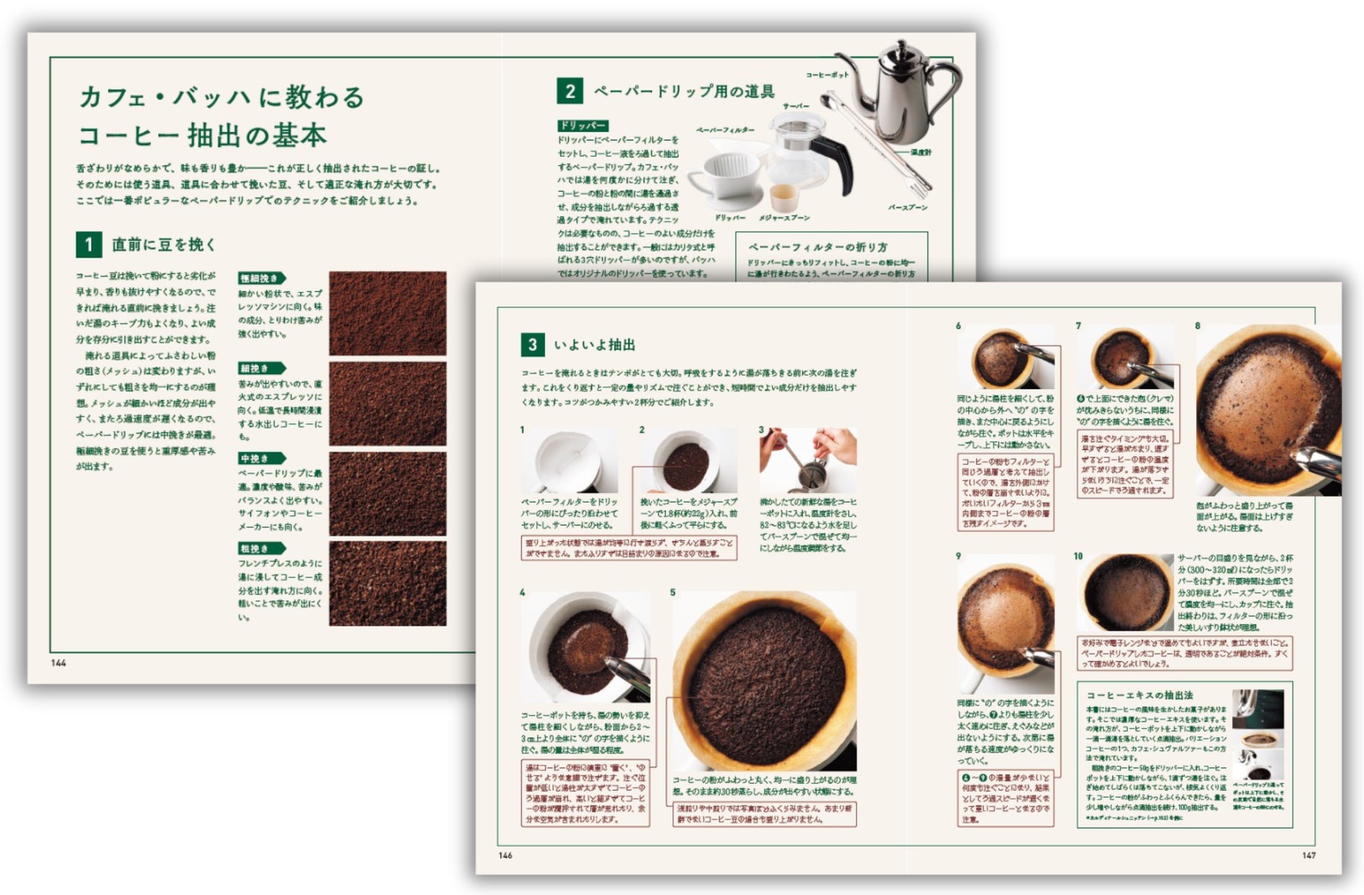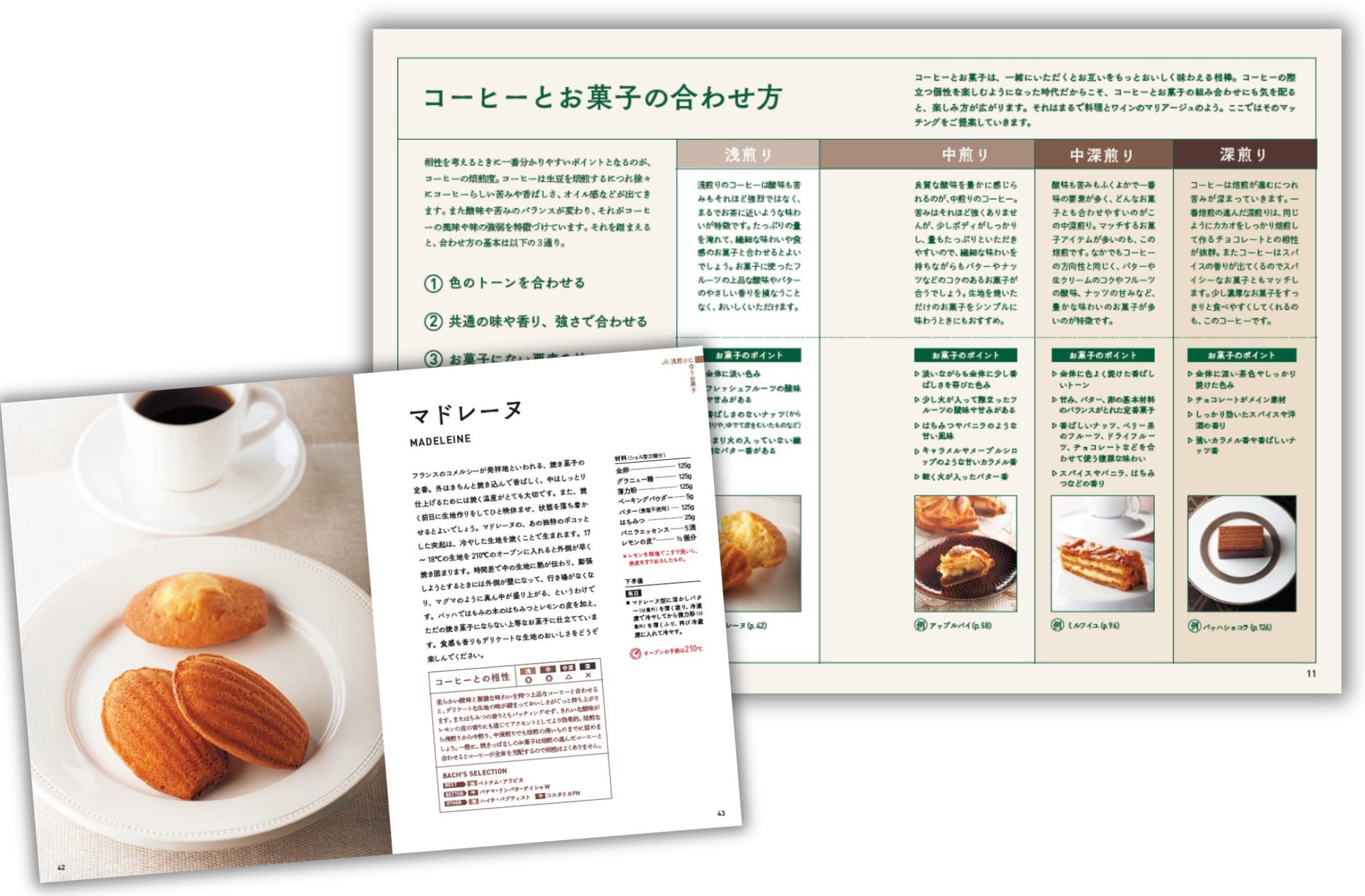 カフェ・バッハのお菓子レシピから、小さなカフェやご家庭でも作りやすい43品を厳選。ベストマッチの焙煎度ごとにご紹介します。ほとんどのお菓子で、まるで動画みたいに作り方を写真で細かく見せながらお教えするので、ご家庭でも失敗なく作れます。また、すべてのお菓子に、コーヒーとの相性と合わせ方のポイントを解説。理解が深まります。
